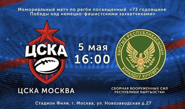 5 мая 2018 года на московском стадионе «Фили» состоится матч по регби, посвященный 73-й годовщине Победы советский войск над немецко-фашистскими захватчиками. На поле сойдутся команды РК ЦСКА и Сборная ВС Киргизской Республики.