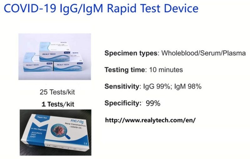 Hangzhou Realy IgG/IgM предоставила экспресс-тесты IgG/IgM всему миру