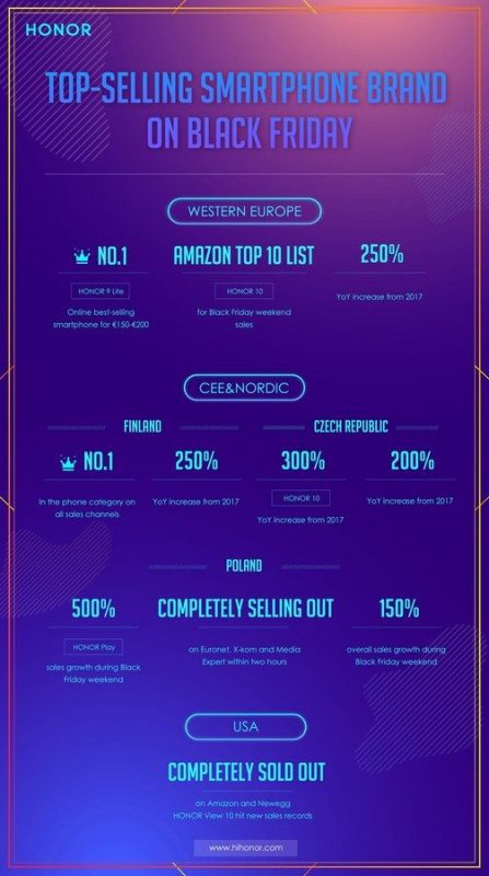 HONOR стал лидером распродаж в Европе, США и на Ближнем Востоке в Черную пятницу