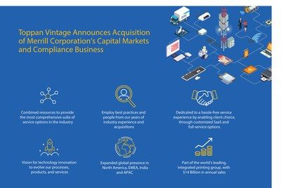 Компания Toppan Leefung Pte. Ltd., входящая в состав ведущей мировой типографской группы и являющаяся материнской фирмой Toppan Vintage, сообщила о стратегическом приобретении подразделения Merrill Communication, специализирующемся на управлении транзакциями и корпоративном контроле (далее – «подразделение капитальных рынков и корпоративного контроля»). Merrill является мировым лидером в предоставлении программных и комплексных решений SaaS для крупных корпораций и их консультантов. В число разработок компании входит, в частности, Merrill Bridge™ — передовое SaaS-решение для XBRL и составления, электронной подачи обязательной отчетности. управления проектами и своевременного распространения нормативной и финансовой документации. Подразделение капитальных рынков и корпоративного контроля Merill войдет в состав международного департамента финансовой печати, коммуникаций и технологий Toppan Vintage.